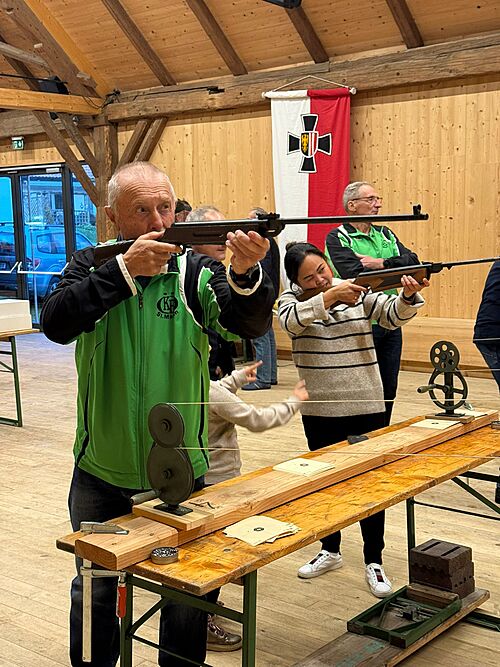 Nachdem während der letzten Jahre die Zahl der Teilnehmer stetig rückläufig war, verzeichneten wir heuer wieder einen Anstieg. Von 40 aktiven Schützen wurden 127 Stände geschossen. Etliche Besucher, ob Mitlieder im KB oder nicht, waren auch nur zum Plaudern und Jausnen gekommen. Unsere von Margot und Bernhard Rauter sowie Ulli Schwierz betreute Gastronomie wurde sehr gut angenommen. Gäste konnten wir aus Weichstetten, Schenkenfelden, St. Johann, St. Martin, Feldkirchen, Herzogsdorf, Gallneukirchen, Zwettl und Eidenberg begrüßen. Man saß beisammen, jausnete und unterhielt sich prächtig. Nach der Probe stießen am Abend noch die jungen Schuhplattler hinzu. Insgesamt waren 14 unserer Kameraden an der Veranstaltung beteiligt, als Schützen, beim Auf- und Abbau, am Schießstand, an der Registrierung und an der Schank, aber auch durch Spenden von Sachpreisen.
